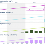 La capitalización del mercado global ha crecido a una tasa del 75% CAGR desde 2011, con una actividad en las redes sociales en 63%, la actividad de los desarrolladores en 84% y la actividad de financiamiento en 62%.