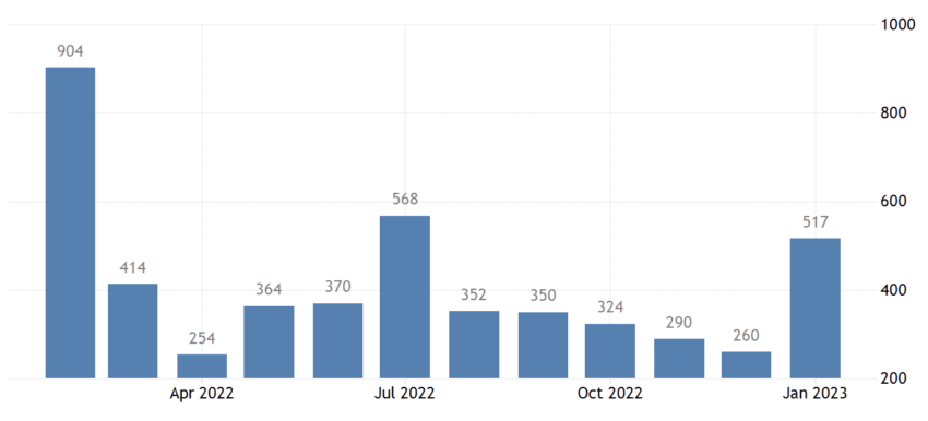 El Departamento de Trabajo de Estados Unidos publicó recientemente un informe que ha dejado a los políticos con sentimientos encontrados. El informe mostró una sorprendente caída en la tasa de desempleo al 3,4%, la más baja desde 1969. Sin embargo, el número de nuevas solicitudes de desempleo alcanzó las 517,000, la más alta desde agosto de 2022.
