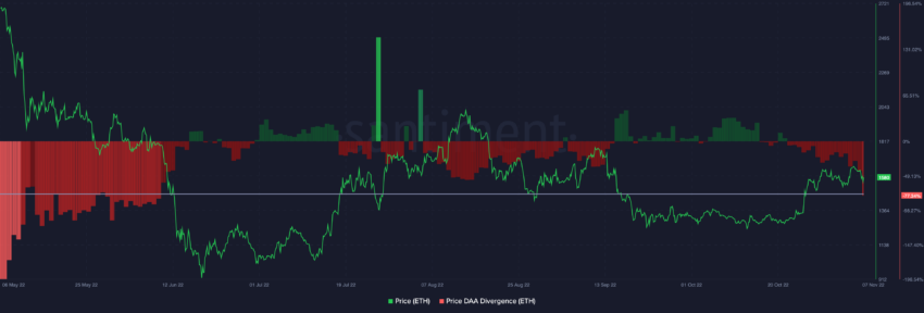 Ethereum (ETH) Price DAA divergence | Source: Sanbase