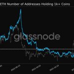 Ethereum (ETH) Number of addresses holding 1k+ coins. Glassnode