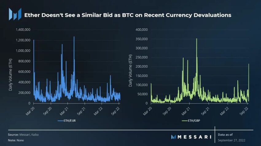 De acuerdo a los datos suministrados por Messari el jueves 29 de septiembre, los inversores del Reino Unido están vendiendo sus monedas locales para comprar BTC y ETH a un ritmo récord.
