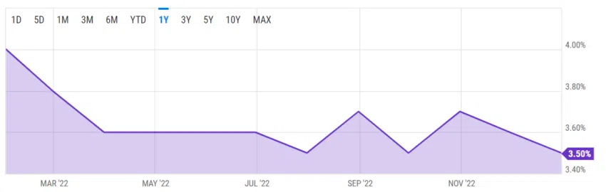El desempleo en diciembre de 2022 cayó al 3,5% desde la cifra revisada del 3,6% en noviembre de 2022, superando la estimación ampliamente aceptada del 3,7%. Una tasa de desempleo más baja significa que la oferta y la demanda de empleo se están estabilizando.