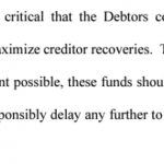 Sus comentarios se derivan de la ley de bancarrotas de Estados Unidos, que protege de acciones legales a los especialistas involucrados en el plan de reestructuración de una empresa en bancarrota.