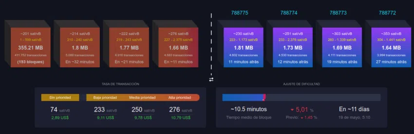 A principios de mayo, las tarifas de transacción de Bitcoin superan las de Ethereum debido a BRC-20. Fuente: Mempool.space/BeInCrypto