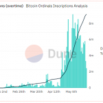Evolución de las inscripciones de Ordinals. Fuente: Dune Analytics