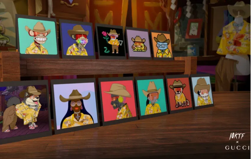 Gucci lanzó el proyecto Gucci Grail con Yuga Labs el año pasado. Gucci se asoció con el “artesano digital” Wagmi-san para diseñar accesorios y ropa que se pueden usar para personalizar NFT.