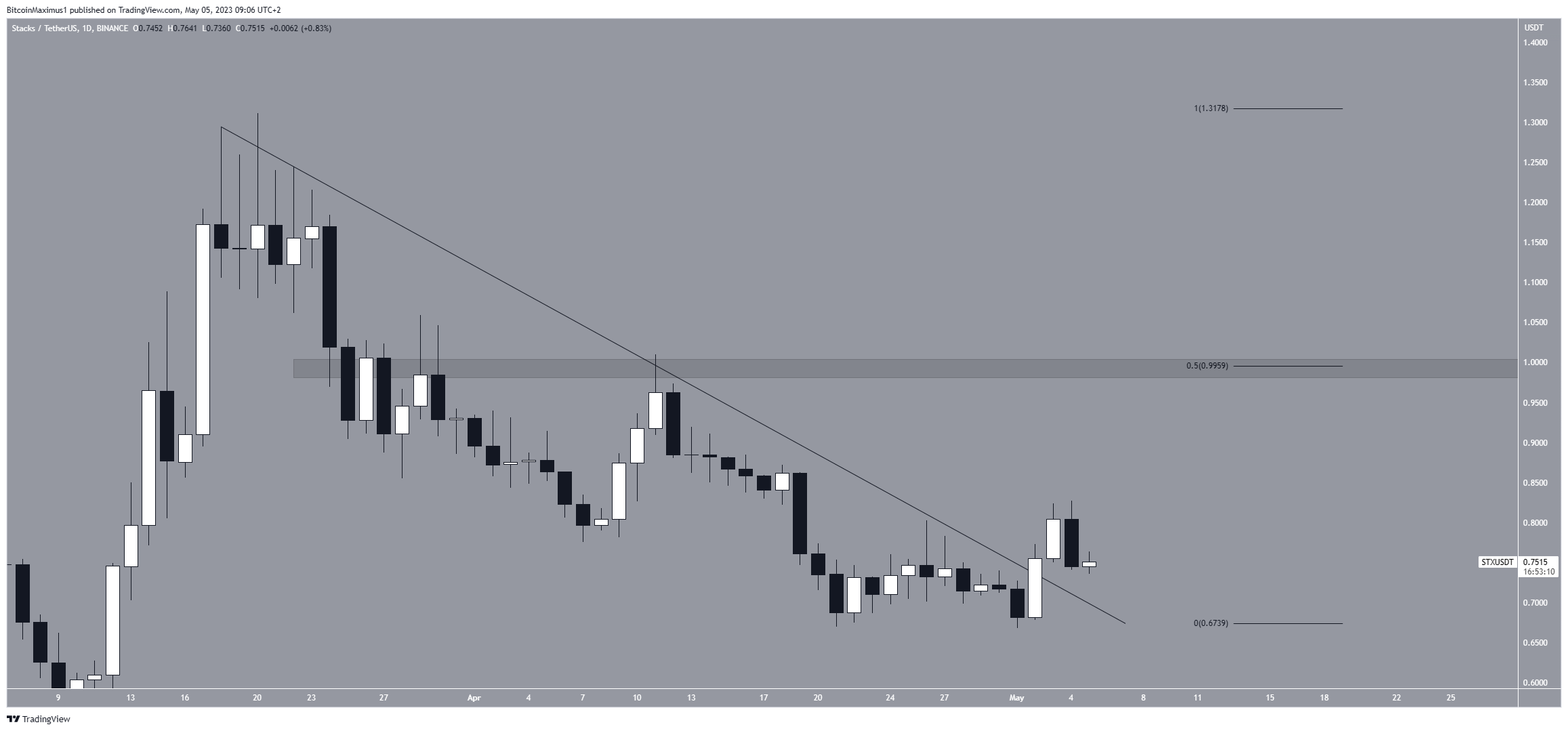 El precio de STX rompió una línea de resistencia descendente el 2 de mayo. La línea había estado vigente desde el 20 de marzo. Como resultado, una ruptura puede catalizar un aumento considerable.