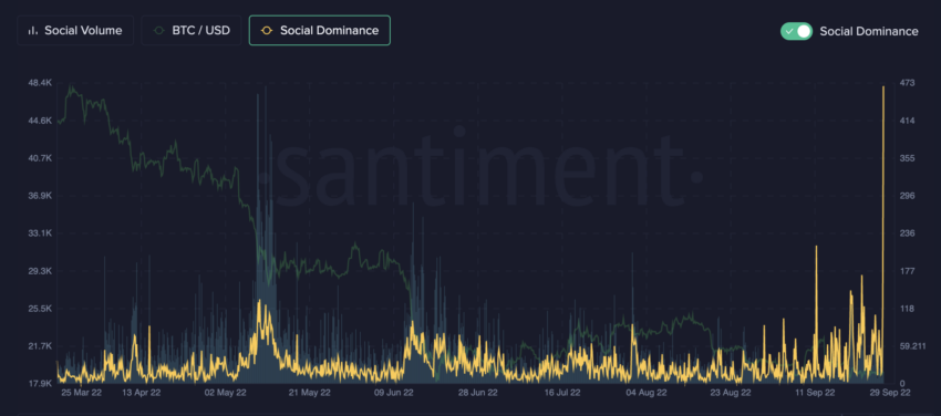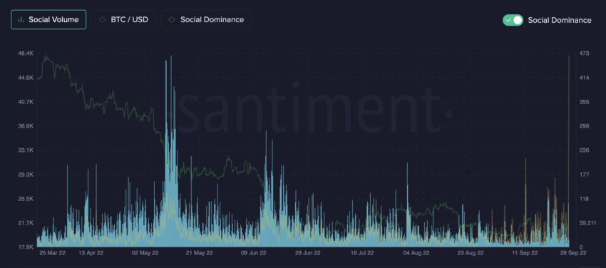 En particular, los volúmenes sociales de BTC/USD disminuyeron, mientras que el dominio social experimentó un gran aumento.