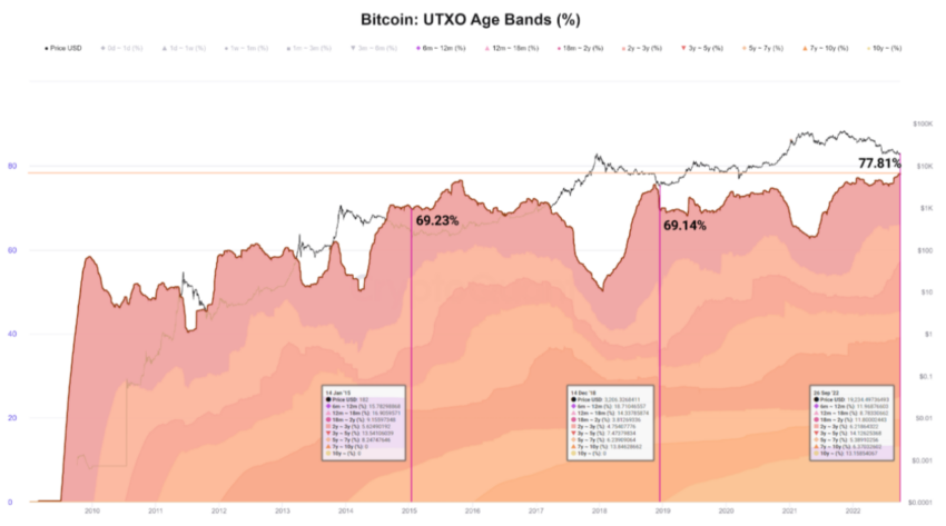 • Ciclo 2022: 14,908,142 BTC — 77.81% de la oferta actual.