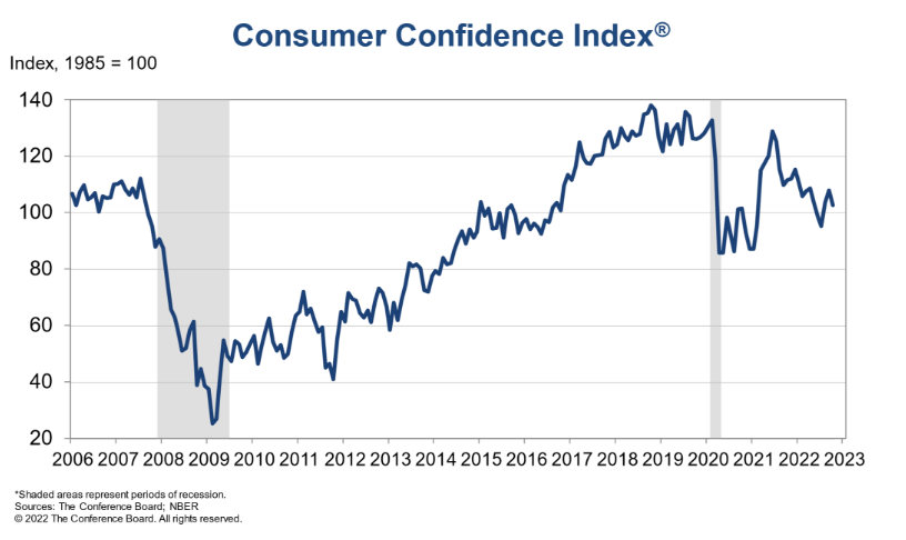 Según Lynn Franco, directora sénior de indicadores económicos del Conference Board, las expectativas sobre la inflación y el aumento de los precios de los alimentos y la gasolina hicieron que el CCI bajara. En octubre de 2022, los hogares encuestados dijeron que reducirían los planes de vacaciones pero planean comprar electrodomésticos, casas y automóviles caros.