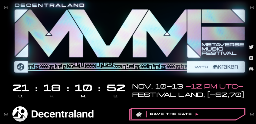 Festival de música Metaverse: Decentraland y el patrocinador Kraken están organizando el segundo Festival de música Metaverse. Habrá 15 escenarios con más de 100 artistas de todos los géneros musicales.