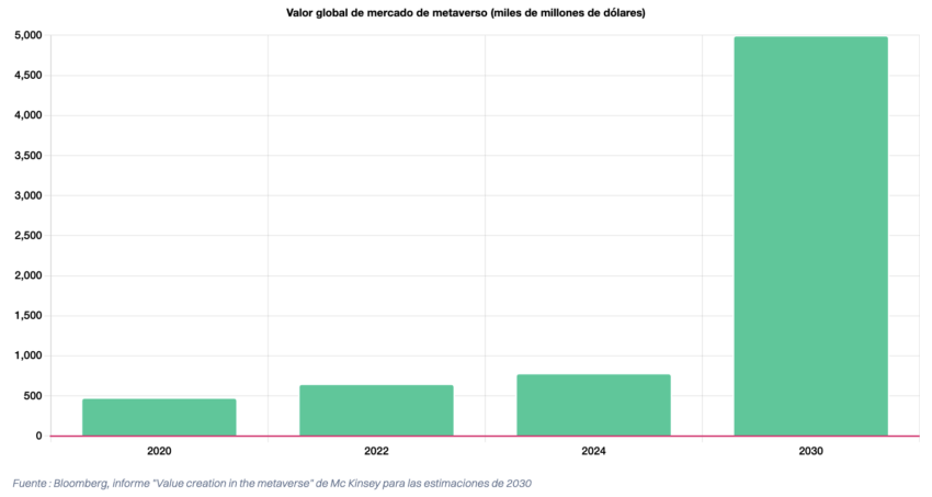 El último informe de Hellosafe reportó que el mercado del metaverso crecerá 670%, mientras que sus ingresos en 2020 eran de 478,7 mil millones de dólares y en 2020 era de 650 mil millones de dólares. Para 2030, los ingresos del metaverso podrían superar los 5 billones de dólares.