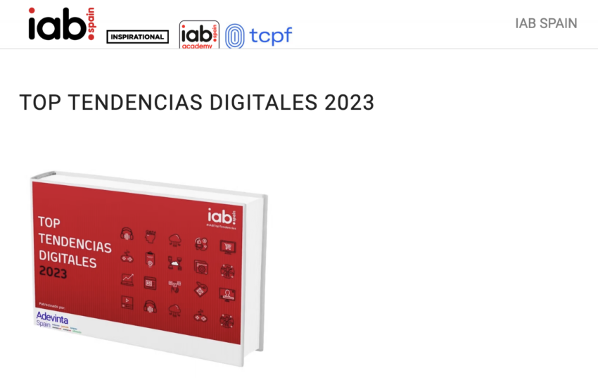 La asociación de publicidad, marketing y comunicación digital en España (IAB Spain) presentó el día de hoy, la edición 2023 de su informe Top Tendencias Digitales; patrocinada por Adevinta Spain. La publicación es un documento de referencia, elaborado con la colaboración de las principales Comisiones de Trabajo de IAB Spain.