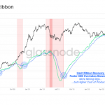 Históricamente, estos intercambios de media móvil del Hash Ribbon preceden a las ganancias de precios. Históricamente, cuando el hashrate cae y después se recupera, se han producido importantes mínimos en los precios de BTC.