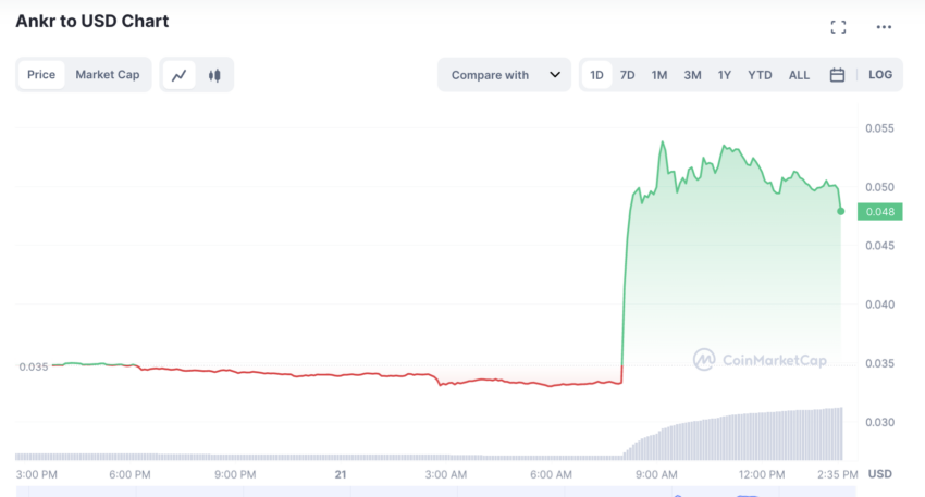Tras el anuncio de Microsoft, el token ANKR se disparó más de 60%, según CoinMarketCap, alcanzando los $0,054, cuando antes del anuncio costaba $0,034, para finalmente estabilizar su precio a $0,048. De acuerdo con U Today, Ankr podría lograr un impulso temporal con este anuncio.