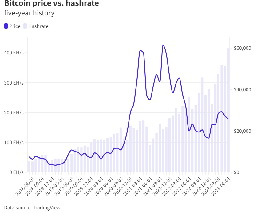 De hecho, el hashrate de Bitcoin ha aumentado constantemente con el tiempo con una mayor competitividad entre los mineros.