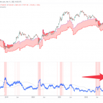 El indicador correlacionado con los costos de producción es Bitcoin Miner Sell Pressure. El autor de esta métrica, @caprioleio, explica que los valores más altos significan una presión de venta más alta de lo habitual. Por el contrario, ingresar al área roja indica una presión de venta extraordinariamente alta.