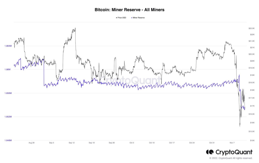 En los últimos días, hemos visto una fuerte caída en las reservas de los mineros de Bitcoin. Por lo tanto, parece que las caídas como resultado del FUD asociado con la bancarrota de FTX fueron impulsadas por la capitulación de los mineros.