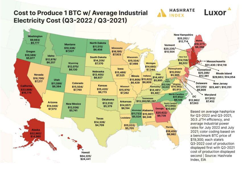 El investigador de minería de Bitcoin, Jaran Mellerud, comparó los costos de producir un BTC en Texas hace un año con los de hoy: