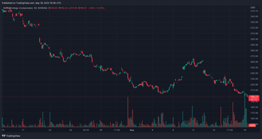 A pesar de que volvió a subir a 260 dólares, desde entonces ha caído por debajo de 200 dólares. En la última declaración de sus tenencias de Bitcoin el mes pasado, MicroStrategy informó la última compra de Bitcoin el 28 de junio, unos 480 por 10 millones de dólares.