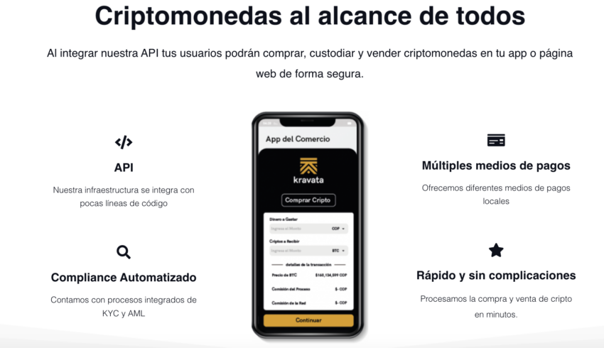 Empresarios de Colombia lanzaron la plataforma Kravata de crypto-as-a-service, que ofrecerá servicios para acelerar la adopción, custodia, pagos, funciones de finanzas descentralizadas (DeFi), como préstamos colateralizados, e incluso permitirá convertir criptos a divisas locales.