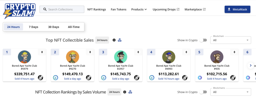 Cryptoslam informa que Art Gobblers es la colección más vendida en las últimas 24 horas (y semana) con 17 millones de dólares en ventas. Esto es aproximadamente el doble de lo que BAYC ha hecho en los últimos siete días.