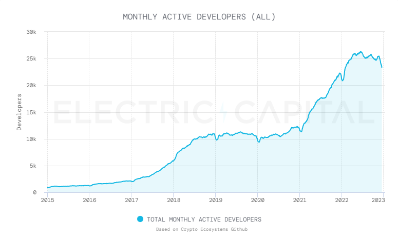 Los números son representativos de un ecosistema de desarrollo saludable para las criptomonedas a pesar de una caída del mercado del 70% en 2022.