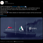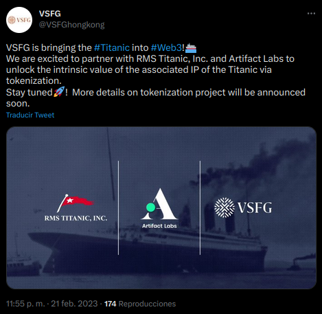La alianza establecida entre RMS Titanic, Inc (RMST). Venture Smart Financial Holdings Ltd (VSFG) y Artifact Labs, permitirá inmortalizar los restos del Titanic y sus artefactos físicos en la Web3.