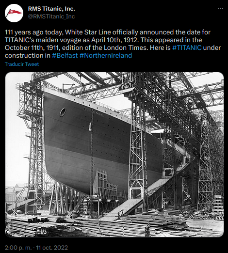 Lamentablemente naufragó durante la noche del 14 y la madrugada del 15 de abril de 1912, mientras realizaba su viaje inaugural desde Southampton a Nueva York. Como consecuencia, murieron 1,496 personas de las 2,208 que iban a bordo.