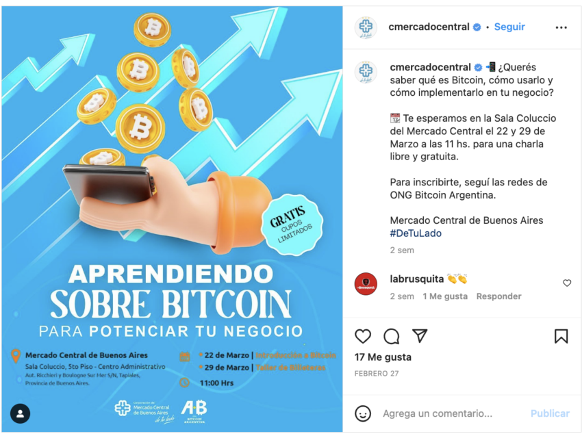 El post Ofrecerán clases sobre Bitcoin en el Mercado Central de Buenos Aires fue visto por primera vez en BeInCrypto.