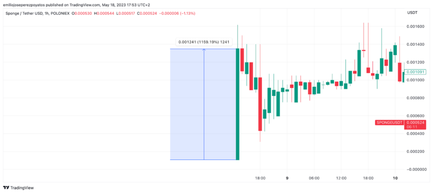 Un caso parecido hemos podido ver con SPONGE, que al ser incluido en POLONIEX obtuvo una espectacular revalorización del +1.159% en tan solo una hora:
