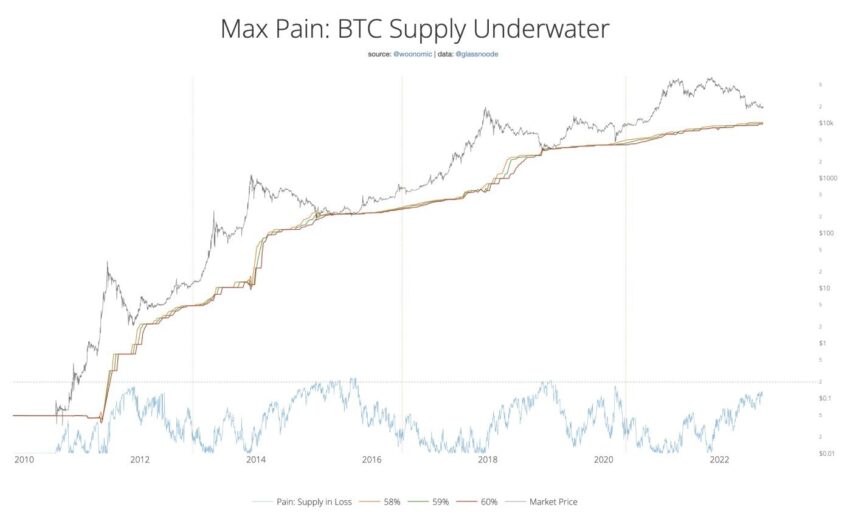 El analista de Bitcoin, Willy Woo, señaló que aún no se habían alcanzado los niveles máximos de dolor, lo que podría significar que los BTC HODLers aún no han tocado fondo.