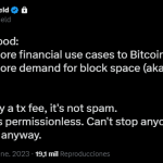 “Si no le gusta un proyecto que alguien está construyendo en Bitcoin, su única opción para detenerlos es construir algo superior que genere tanta demanda que los supere en el mercado de espacio de bloques”.