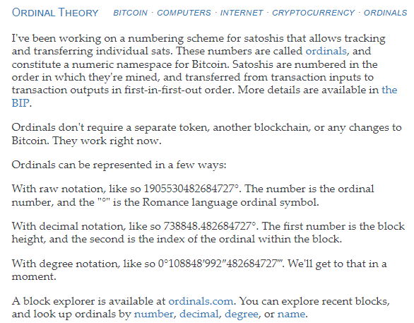 Es en este escenario donde aparecen Casey Rodarmor y Ordinals. A través de su blog personal, el desarrollador compartió los detalles del proyecto, el cual se basa en la ‘Ordinal Theory‘:
