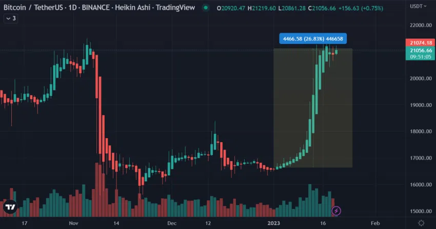 Según el proveedor de datos Kaiko, el comercio promedio en exchanges notables aumentó en 300 dólares en la semana que finalizó el 17 de enero de 2023.