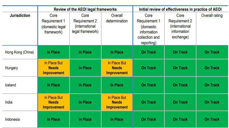 En la Revisión por pares del Intercambio automático de información de cuentas financieras 2022, la OCDE descubrió que India necesita mejorar su marco nacional con respecto a su Estándar de intercambio automático de información.