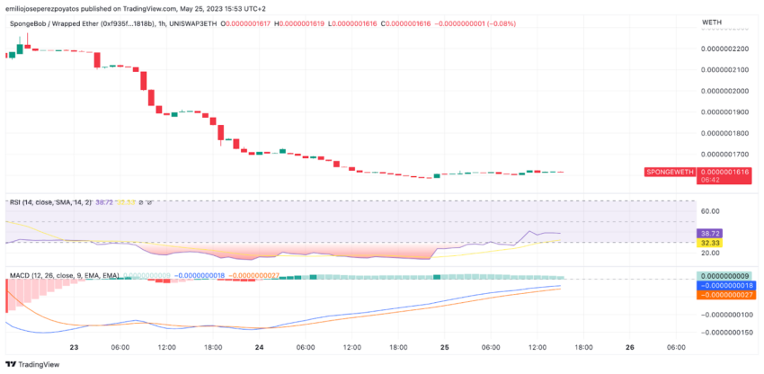 Detalle de cotización de SPONGE con RSI y MACD / Fuente: TradingView