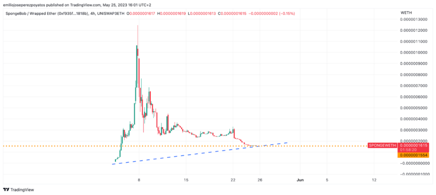 Detalle de cotización de SPONGE desde origen incluyendo soporte y tangencial / Fuente: TradingView