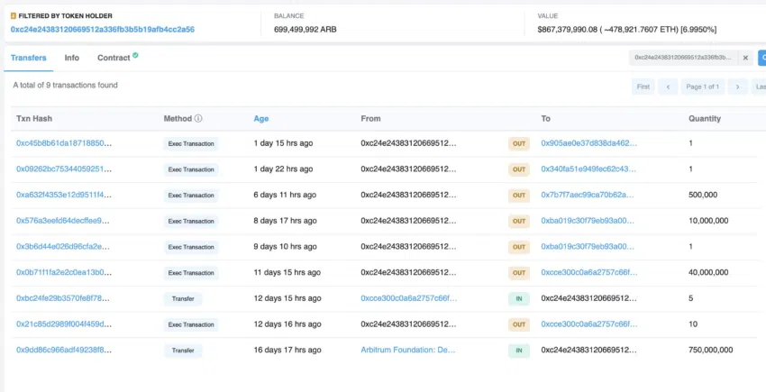 Actualización 2 de abril, 17:58 UTC: La Fundación Arbitrum emitió una declaración para dirigirse a la comunidad cripto. Dijo que de la transferencia on-chain de 50 millones de tokens ARB, se asignaron 40 millones de ARB como un “préstamo a un actor sofisticado en el espacio de los mercados financieros”. Mientras tanto, los 10 millones de tokens ARB restantes se convirtieron en fiduciarios y se dedicaron a los costos operativos.