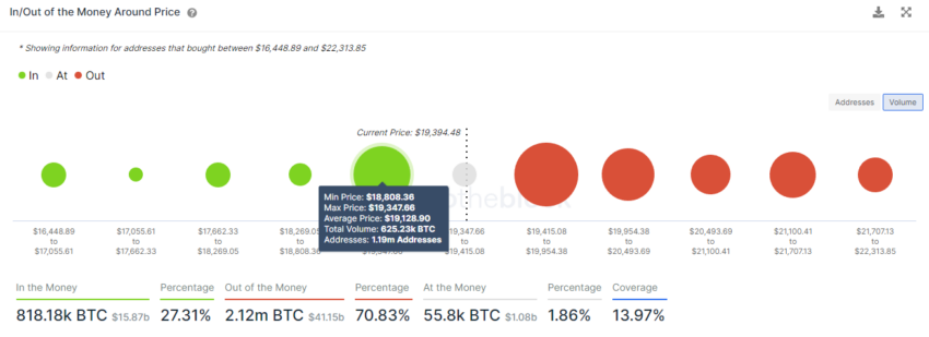 Sin embargo, una mirada al indicador In/out of the Money Around Price resaltó que el nivel de soporte más significativo para el precio de Bitcoin estaba en 19,000 dólares, donde 1,19 millones de direcciones compraron más de 625,000 BTC.