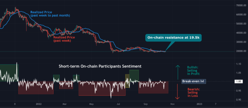 Además, a corto plazo, los valores de SOPR presentan una tendencia bajista ya que el precio de BTC rompió por debajo de la resistencia de 19,500 dólares.