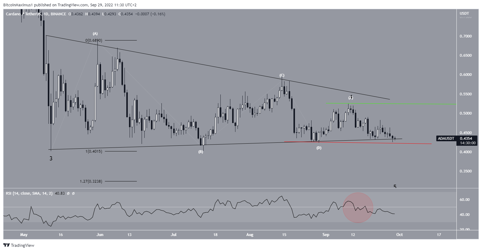 El precio de Cardano (ADA) ha estado operando dentro de un patrón neutral desde su mínimo de mayo. Una ruptura del mismo podría acelerar en gran medida la tasa de caída.