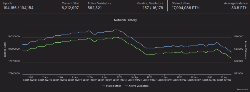 De acuerdo a los datos de Beaconcha.in, hay más de 17 millones de ETH en staking, lo que actualmente equivale a 35 mil millones de dólares. Al mismo tiempo, el recuento de validadores de la red asciende a más de 562 mil.