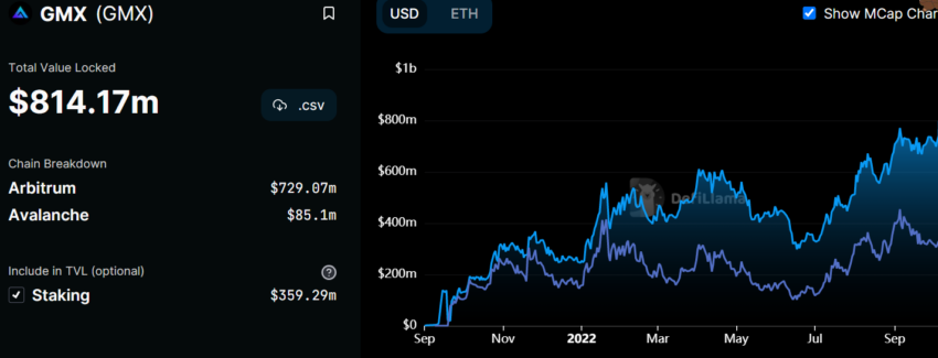 Además, los datos de DeFiLlama destacaron un aumento saludable en el valor total bloqueado de GMX, que se situó en niveles máximos históricos de 814,17 millones de dólares.