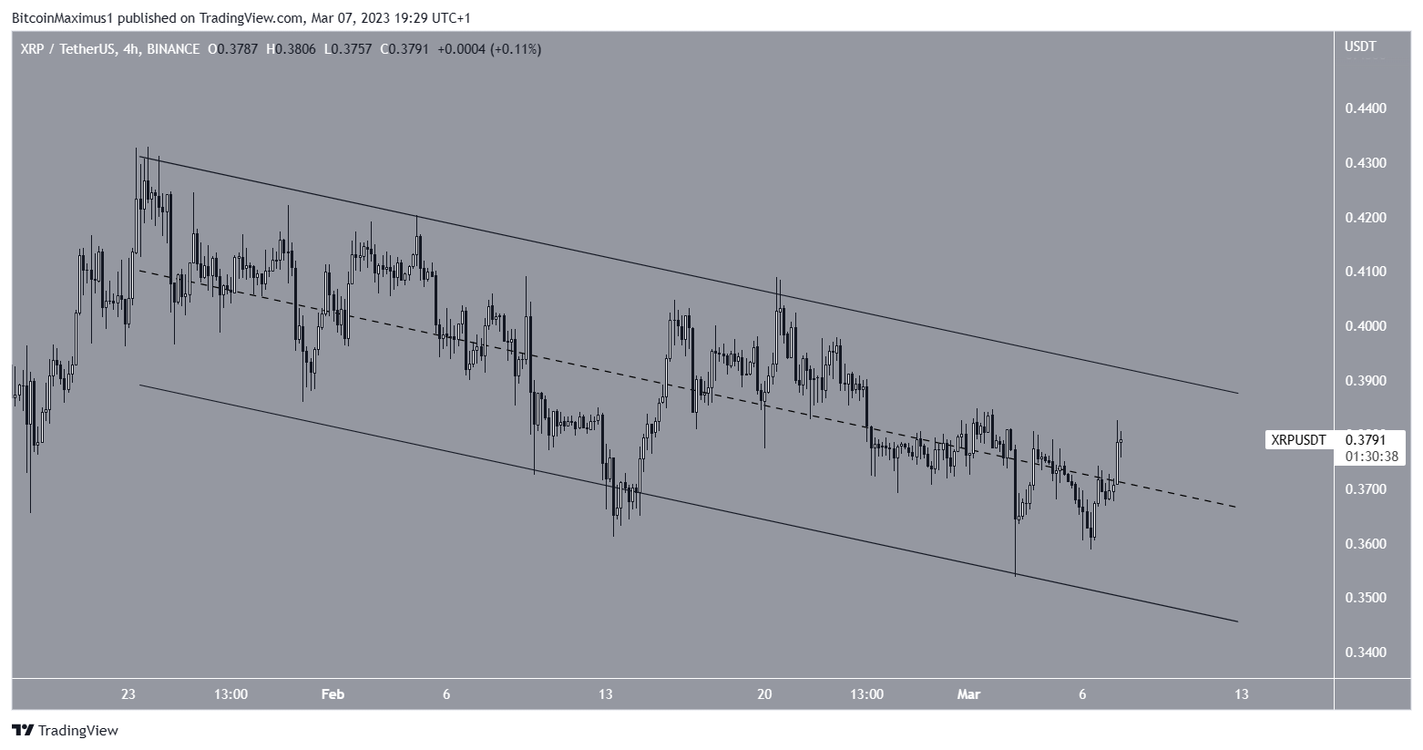 El historial de precios del gráfico de cuatro horas a corto plazo muestra que el precio de XRP se ha negociado dentro de un canal paralelo descendente desde el 23 de enero. Dichos canales generalmente contienen movimientos correctivos, lo que significa que se espera una eventual ruptura.