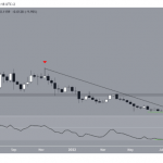 Basado en el marco de tiempo diario, la perspectiva parece bajista. El RSI diario está por debajo de 50 y experimentó una ruptura desde una línea de soporte ascendente (línea verde).