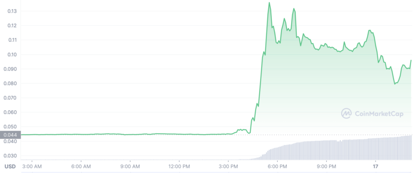 TRU, el token de gobernanza del protocolo TrueFi, dio un gran salto durante el día 16 de febrero. Su precio pasó de 0.044 dólares a 0.13 dólares entre las 17 y las 18 horas (UTC +1). Este es un aumento del 225% en el espacio de una hora.