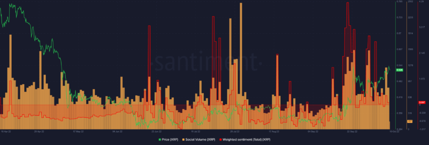 No obstante, faltaba un fuerte sentimiento positivo en la escena, indicativo del retroceso visto en el sentimiento social ponderado en XRP.