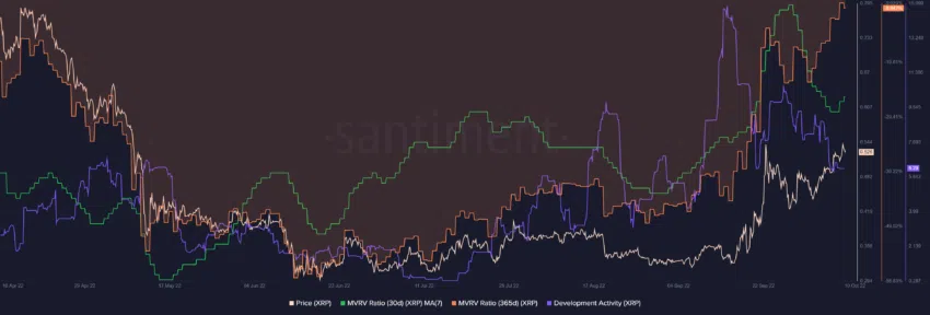 Además, XRP está viendo una actividad de desarrollo cada vez menor después de alcanzar un pico a mediados de septiembre.