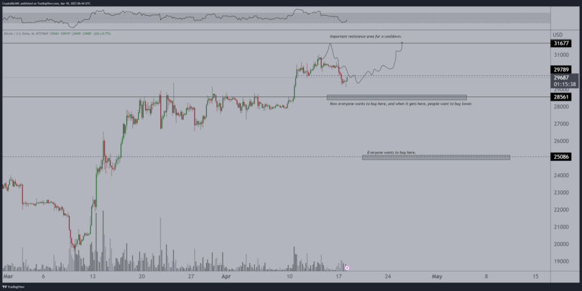 Por último, el trader de criptomonedas @DaanCrypto, a su vez, está esperando una nueva prueba de nivel de 29,000 dólares para el precio de BTC.